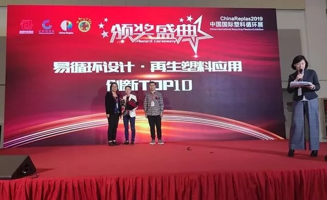 11月8日,在ChinaReplas2019中國國際循環(huán)展期間,塑料易循環(huán)設(shè)計&再生塑料創(chuàng)新應(yīng)用TOP10頒獎典禮隆重舉行。